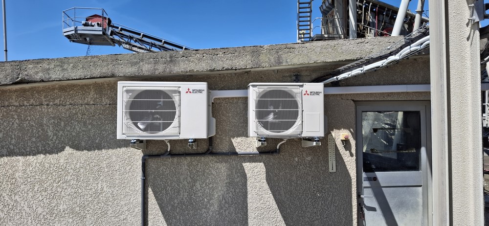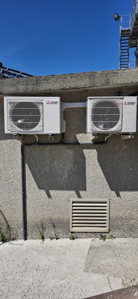 Installation de deux pompe à chaleur air air de marque Mitsubishi à la carriere Lafitte à Pontonx